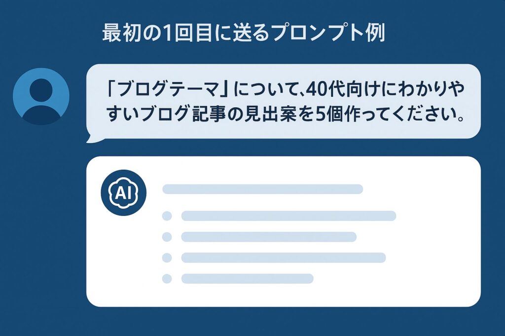 例)「AI副業、最初の30日でやること」というテーマで、見出し案を3~5個作ってもらう。指示は端的に送る方が伝わりやすい(私の経験から)