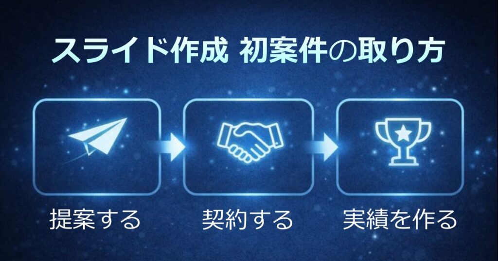 結論:スライド作成の初案件は、**「原稿あり・10枚前後」**の案件を狙い、提案10件で1件目を取るのが最短です。