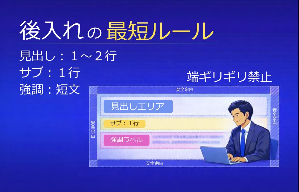 - 余白:上下左右はしっかり空ける(端ギリギリ禁止)