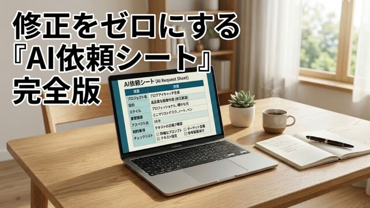 この3つを入れた「AI依頼シート」を使えば、文章、画像、調査、資料づくりまでかなり安定します。