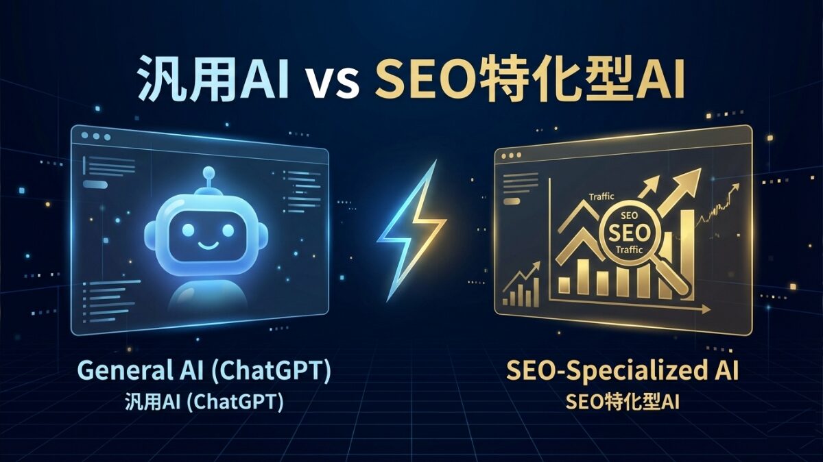 実は、ChatGPTは「文章を作る」のは得意ですが、「検索で勝つためのデータ分析」には限界があります。そこで重要になるのが、「SEO特化型AI」との使い分けです。